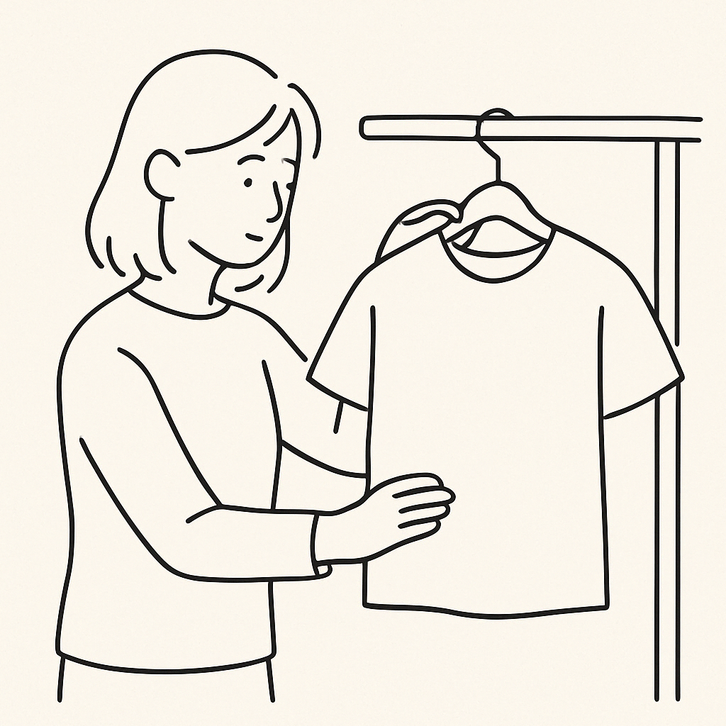 입었던 옷은 즉시 빨래통에 넣거나, 필요하다면 바로 세탁한다. 다시 입을 수 있는 옷은 정해진 자리에 정리해 둔다. 이를 통해 의류를 체계적으로 관리할 수 있고, 옷장을 정돈된 상태로 유지할 수 있다. 또한 옷을 고르는 데 소요되는 시간을 줄여 준다.